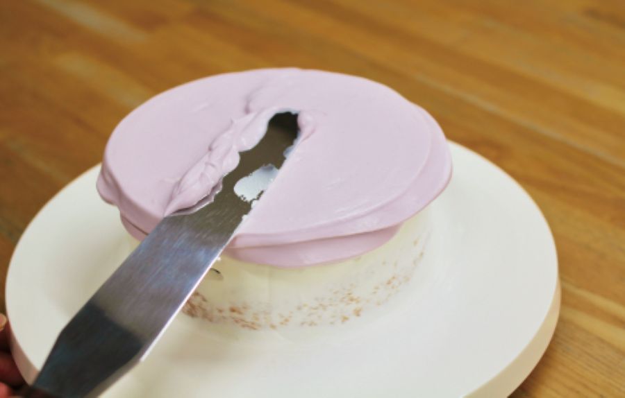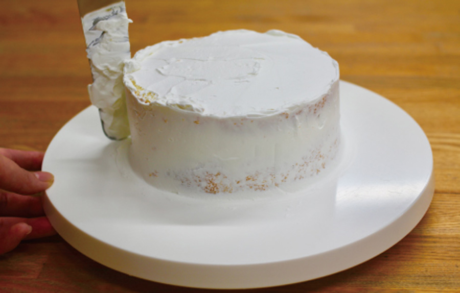 【下塗り2】表面→側面の順で、スパテルでクリームを延ばします。