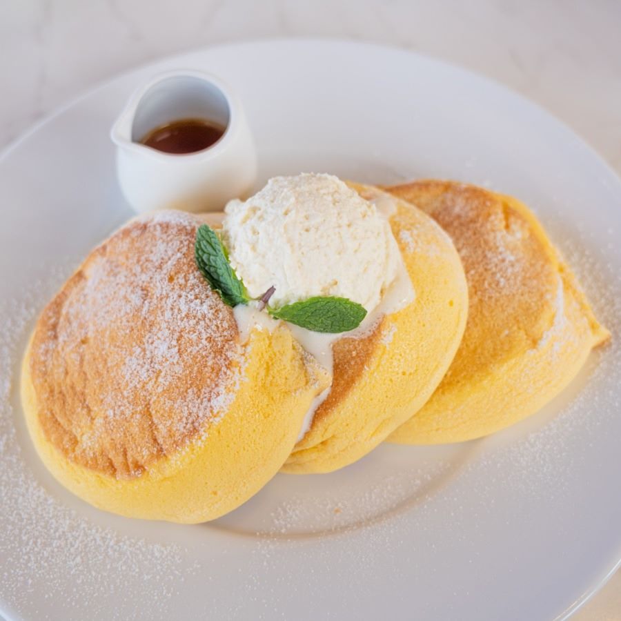 - フライパンを強火で熱し、濡れ布巾にのせて底を少し冷まします。生地を流し入れフタをして弱火にかけます。表面にプツプツと気泡が出てきたら裏返し、約1分半焼きます。