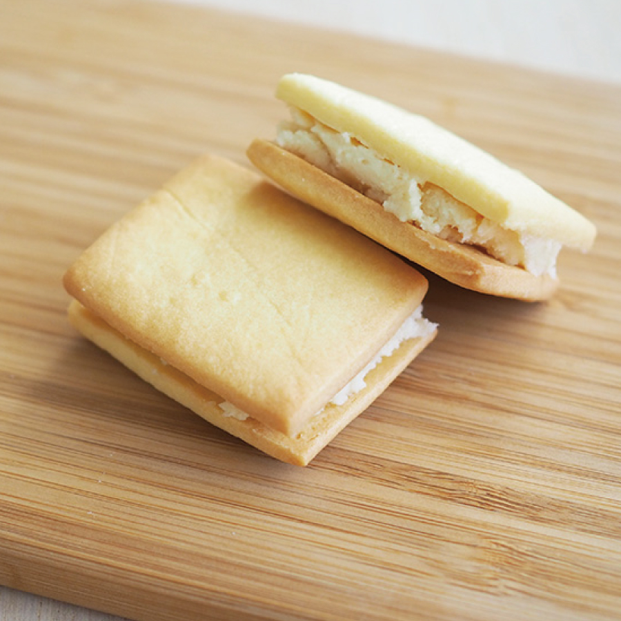 ≪仕上げ≫ - 完全に冷めたクッキーの上にメープルバタークリームをのせ、サンドします。