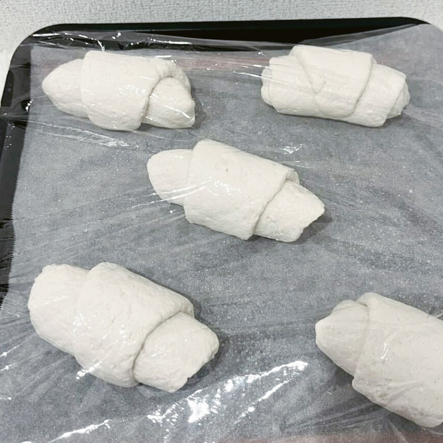 乾燥しないように霧吹きで水をかけ、ラップをして生地がひと回り大きくなるまで