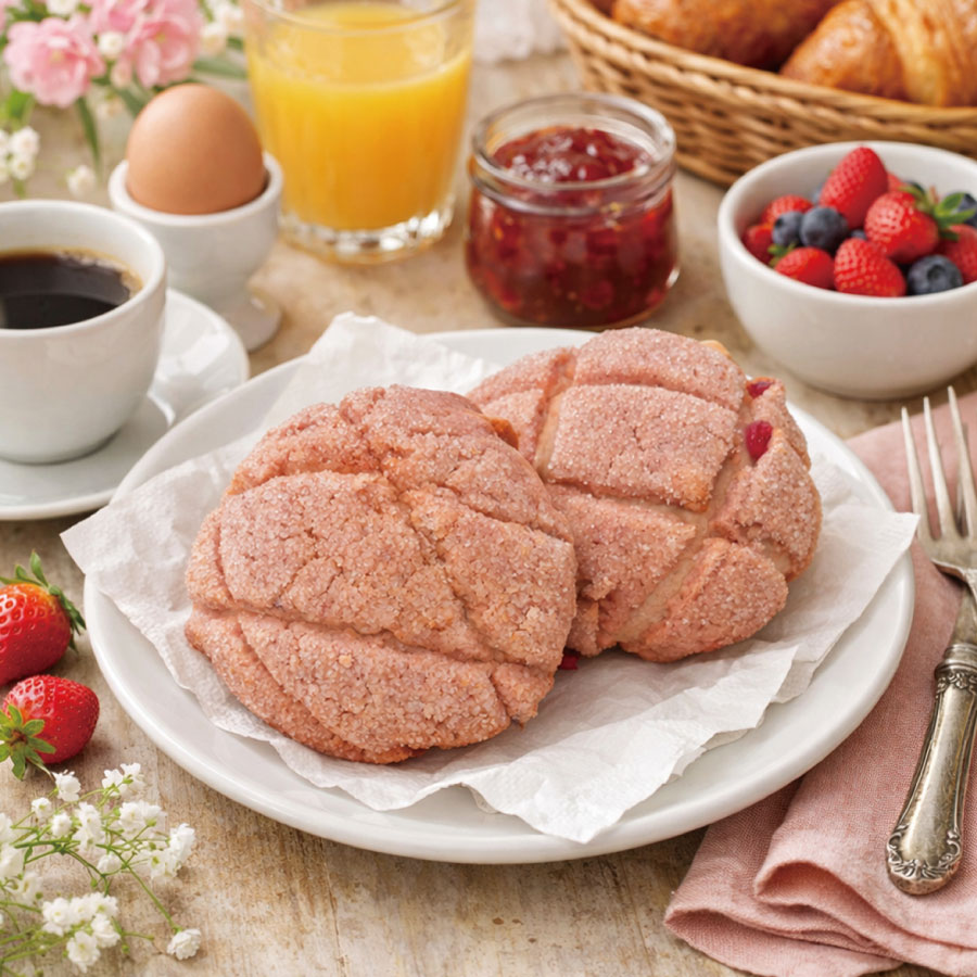 - ボウルにパン生地用の強力粉、いちごパウダー、スキムミルクを入れて混ぜておきます。