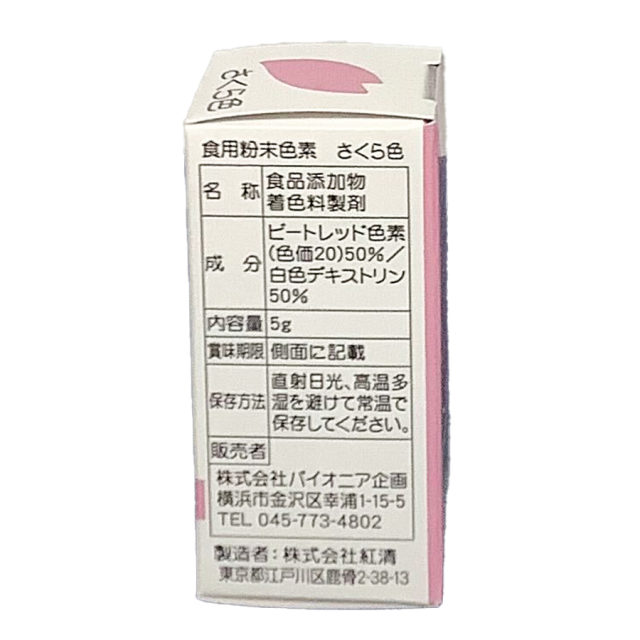 | 成分 | ビートレッド色素(色価20)50% 白色デキストリン50% |